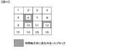 時間軸方向変化領域抽出手段100は、画面をM×N分割(M,Nは自然数)してできる各領域に対して、時間方向にどれだけ変化しているかを算出する。これには、[数1]や[数2]を用いることができる。そして、時間方向の変化量が大きい領域を選択し、その領域のインデックスを変化領域情報として出力する。この際の領域の選択方法は、時間方向の変化量がある閾値以上の場合に選択する方法や、変化量の大きい順に領域を並べたときに、大きい方から一定個数分選択する方法を用いることができる。The time axis direction change area extraction means 100 calculates how much the area is changed in the time direction for each area formed by dividing the screen into M × N (M and N are natural numbers). For this, [Equation 1] and [Equation 2] can be used. Then, an area having a large amount of change in the time direction is selected, and the index of the area is output as change area information. In this case, the region selection method uses a method of selecting when the amount of change in the time direction is greater than or equal to a threshold value, or a method of selecting a certain number from the larger when the regions are arranged in descending order of the amount of change. Can do.