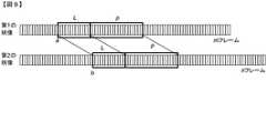 ピクチャ同士の照合の場合と同様に、一定の区間に含まれるピクチャに対する領域間で上述の照合処理を行い、その区間が一致するかどうかを求める。この際、変化領域情報の不一致により照合できないピクチャが存在する場合があるが、このようなピクチャは評価から除いて領域間照合を行う。例えば、Tピクチャ,T+1ピクチャ,T+2ピクチャのうち、TとT+2ピクチャでは照合できたが、T+1ピクチャではできなかった場合に、TとT+2ピクチャの結果のみを用いて一致するかどうかを判定する。As in the case of collation between pictures, the above-described collation processing is performed between areas for pictures included in a certain section, and it is determined whether or not the sections match. At this time, there may be a picture that cannot be collated due to the mismatch of the change area information. However, such a picture is excluded from the evaluation and the inter-area collation is performed. For example, if T and T + 2 pictures can be matched in T picture, T + 1 picture, and T + 2 picture but not in T + 1 picture, only the result of T and T + 2 pictures To determine if they match.