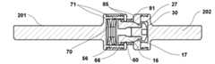 제 4 실시예에 따른 척추 지지 로드가 제 3 실시예와 다른 점은, 구면 돌설부(16)를 수용하기 위해 제 1 본체(201)에 형성되었던 체임버(70)가, 제 4 실시예서는 구면 돌설부(16) 내에 형성되며, 따라서, 제 1 본체(201)의 로드 부분이 상기 구면 돌설부(16)의 체임버(70) 내에서 이동 가능하도록 대체되었다는 점이다.The spine support rod according to the fourth embodiment is different from the third embodiment in that the
