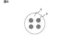 この連続した複合体を、直径40mmの単軸押出機の先端に設置された電線被覆法用のコーティングダイ中に通し、押出機からダイ中に260℃で溶融させた前記溶融混練物(A)と第3の樹脂(B)からなる樹脂組成物を吐出させた。これにより、前記複合体の周囲を前記樹脂組成物で連続的に被覆した。The continuous composite was passed through a wire coating coating die disposed at the tip of a single screw extruder having a diameter of 40 mm and melted at 260 ° C. from the extruder into the die (A). And a resin composition comprising the third resin (B) were discharged. Thereby, the periphery of the composite was continuously coated with the resin composition.