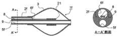 図1にバルーン部1aが示されるバルーン付きアブレーションカテーテルのバルーン付きアブレーションカテーテル用シャフト2aは、単一管からなる。バルーン付きアブレーションカテーテル用シャフト2aの先端側にはバルーン3が取り付けられている。また、バルーン付きアブレーションカテーテル用シャフト2aは、バルーン3の内部には連通せずにバルーン付きアブレーションカテーテル用シャフト2を先端まで貫通するガイドワイヤー通過用ルーメン5aと、バルーン3の内部に連通する液体供給用ルーメン6aと、を備える。Theshaft 2a for an ablation catheter with a balloon of the ablation catheter with a balloon whoseballoon part 1a is shown in FIG. 1 is composed of a single tube. Aballoon 3 is attached to the distal end side of the balloonablation catheter shaft 2a. Theablation catheter shaft 2a with a balloon does not communicate with the inside of theballoon 3, but a guidewire passing lumen 5a that penetrates theablation catheter shaft 2 with a balloon to the tip, and a liquid supply that communicates with the interior of theballoon 3.Lumen 6a.