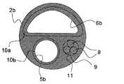図3に示すバルーン付きアブレーションカテーテル用シャフト2bには、ガイドワイヤー通過用ルーメン5bの内面及び液体供給用ルーメン6bの内面に層構造を形成するためのチューブ10a、10b及び埋め込み型チューブ11が、互いに摺動することなく接している。In theablation catheter shaft 2b with balloon shown in FIG. 3,tubes 10a and 10b and animplantable tube 11 for forming a layer structure on the inner surface of the guidewire passage lumen 5b and the inner surface of theliquid supply lumen 6b are mutually connected. It touches without sliding.