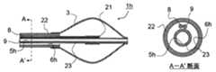 バルーン3の先端部を内筒シャフト23の先端部外周に熱溶着で固定すると共に、バルーン3の後端部を外筒シャフト22の先端部外周に熱溶着した。The tip of theballoon 3 was fixed to the outer periphery of the tip of theinner cylinder shaft 23 by heat welding, and the rear end of theballoon 3 was heat-welded to the outer periphery of the tip of theouter cylinder shaft 22.