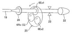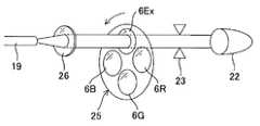 また、フィルタ6R,6Gは、それぞれ赤及び緑の狭帯域を透過する特性に設定されている(例えば図3の6R,6Gと同じである)。Further, thelight source unit 3H has a configuration in which the three filters provided in therotary filter 25 are replaced with four filters in thelight source unit 3B of the second embodiment. That is, as shown in FIG. 24, therotary filter 25 is provided with the excitation light filter 6Ex and thereference light filters 6R, 6G, and 6B that transmit the narrowband R, G, and B.