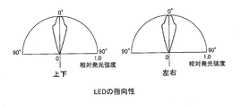 本実施形態では、タッチ面20となるタッチ領域の表面に沿ってx軸方向及びy軸方向に光を伝播させる。このため、上記赤外光源1としては、図4に示すように、上下方向及び左右方向の光の指向性(配光特性)が鋭い赤外光を出射できる赤外光源1を用いることができる。このような赤外光源1としては、例えば、砲弾型(回転楕円体を半分に切ったような形)の赤外LEDが挙げられる。また、上述したような赤外光を出射できる赤外光源としては、例えばTLN117(N)(TOSHIBA社製)などを用いることができる。In the present embodiment, light is propagated in the x-axis direction and the y-axis direction along the surface of the touch area to be thetouch surface 20. For this reason, as the infraredlight source 1, as shown in FIG. 4, an infraredlight source 1 capable of emitting infrared light having sharp directivity (light distribution characteristics) of light in the vertical direction and the horizontal direction can be used. . As such an infraredlight source 1, for example, a bullet-type (in a shape in which a spheroid is cut in half) is used. In addition, as an infrared light source capable of emitting infrared light as described above, for example, TLN117 (N) (manufactured by TOSHIBA) or the like can be used.