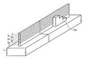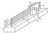 次に、不純物添加シリコン酸化膜を堆積し、例えば、PEPによるパターニングの後、異方性ドライエッチングを施すことにより、図9A中、16aで示すように、階段形状を有し、かつ、フィン形状に加工された積層膜(シリコン基板1上のシリコン酸化膜層2、シリコン層3a、シリコン酸化膜層4a、シリコン層3b、シリコン酸化膜層4b、シリコン層3c、絶縁膜5)に接するような形状に加工する。Next, an impurity-added silicon oxide film is deposited and subjected to anisotropic dry etching after patterning by, for example, PEP, thereby having a step shape and a fin shape as shown by 16a in FIG. 9A. In contact with the laminated film (silicon