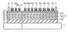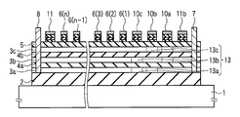 本実施形態では、積層膜6(X)と平行に10a、10b、10cからなる複数のレイヤー選択トランジスタ10及び選択トランジスタ11が形成されている。In this embodiment, a plurality of