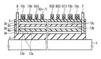 従って、図1には、積層膜6のすべてが独立しているが、絶縁膜6(X)a、電荷蓄積層6(X)b、絶縁膜6(X)cのいずれか又はそれらの全てが連結していても良い。Accordingly, in FIG. 1, all of the