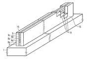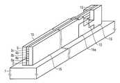 次に、シリコン酸化膜を堆積し、例えば、PEPによるパターニングの後、異方性ドライエッチングを施すことにより、図9B中、15で示すように、不純物添加シリコン酸化膜16aの階段形状のそれぞれの上に形成されるような形状に加工する。Next, a silicon oxide film is deposited and subjected to anisotropic dry etching after patterning by, for example, PEP, so that each of the stepped shapes of the impurity-added