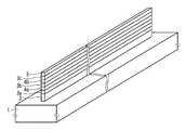 次に、シリコン基板1上のシリコン酸化膜層2、シリコン層3a、シリコン酸化膜層4a、シリコン層3b、シリコン酸化膜層4b、シリコン層3c、絶縁膜5を、例えば、PEPによるパターニングの後、異方性ドライエッチングを施すことにより、図4Cで示すような短冊(フィン)形状に加工する。Next, after patterning the silicon