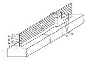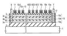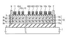 積層膜6(X)は、絶縁膜2、シリコン層3、絶縁層4、絶縁膜5の積層からなる積層構造の周りを取り囲むように形成されている。ここで、Xは1~nの自然数をとり、n個の積層膜6のそれぞれが電気的に絶縁された状態で形成されている。The laminated film 6 (X) is formed so as to surround a laminated structure composed of a laminated film of the insulating