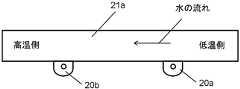 図4A、4Bにおいて、冷却プレート21a、21b内の水の流れる方向をそれぞれ逆方向とすることにより、電気二重層キャパシタに当接する少なくとも一方の冷却プレート内を移動する水は移動開始地点により近い水が移動することとなる。そのため、水と電気二重層キャパシタとの温度差からより効率的に冷却ができると共に、各電気二重層キャパシタの冷却特性をより均等にすることが可能となる。In FIGS. 4A and 4B, by making the flowing directions of water in the