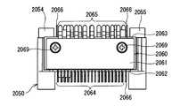 モジュールユニット2260は、4つの半導体モジュール2261~2264及び配線基板2265を有している。半導体モジュール2261~2264は、幅広面に垂直な1つの面にそれぞれ3本の端子2266が設けられ、この端子2266がモータ2002の径方向外側を向くように配置される。半導体モジュール2261~2264の端子2266は、パワー回路基板2070側に略直角に折り曲げられる。Themodule unit 2260 includes foursemiconductor modules 2261 to 2264 and awiring board 2265. Each of thesemiconductor modules 2261 to 2264 is provided with threeterminals 2266 on one surface perpendicular to the wide surface, and theterminals 2266 are arranged so as to face the outside in the radial direction of themotor 2002. Theterminals 2266 of thesemiconductor modules 2261 to 2264 are bent at a substantially right angle toward thepower circuit board 2070 side.