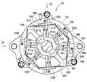 モータケース2010の径方向内側には、ステータ2020が配置される。ステータ2020は、モータケース2010の径方向内側に突出する12個の突極を有している。突極は、モータケース2010の周方向に所定間隔で設けられている。突極は、磁性材料の薄板を積層してなる積層鉄心、及び積層鉄心の軸方向外側に嵌合するインシュレータを有している。インシュレータには、巻線2026が巻回されている。巻線2026は、U相、V相、及びW相の三層巻線を構成している。Thestator 2020 is disposed inside themotor case 2010 in the radial direction. Thestator 2020 has twelve salient poles that protrude inward in the radial direction of themotor case 2010. The salient poles are provided at predetermined intervals in the circumferential direction of themotor case 2010. The salient pole has a laminated iron core formed by laminating thin plates of magnetic material, and an insulator fitted to the outside in the axial direction of the laminated iron core. A winding 2026 is wound around the insulator. The winding 2026 constitutes a U-phase, V-phase, and W-phase three-layer winding.