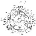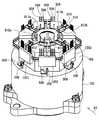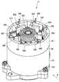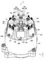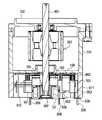 ロータ301は、例えば鉄等の磁性体から筒状に形成されている。ロータ301は、ロータコア302と、当該ロータコア302の径方向外側に設けられた永久磁石303とを有している。永久磁石303は、N極とS極とを周方向に交互に有している。Therotor 301 is formed in a cylindrical shape from a magnetic material such as iron. Therotor 301 includes arotor core 302 and apermanent magnet 303 provided on the outer side in the radial direction of therotor core 302. Thepermanent magnet 303 has N poles and S poles alternately in the circumferential direction.