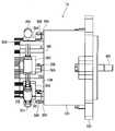 (D)上記実施形態ではプリント基板801、802の基板面がシャフト401の中心線に対し垂直となっているが、垂直に配置することには限定されない。また、プリント基板801、802を有する構成としたが、プリント基板を備えない構成であってもよい。(D) Although the substrate surfaces of the printedcircuit boards 801 and 802 are perpendicular to the center line of theshaft 401 in the above-described embodiment, it is not limited to be disposed vertically. Moreover, although it was set as the structure which has the printedcircuit boards 801 and 802, the structure which is not provided with a printed circuit board may be sufficient.