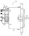 (12)シャフト401の先端にマグネット402が設けられており、このマグネット402の回転位置をプリント基板801上の位置センサ73が検出することでシャフト401の回転位置が検出される。これにより、比較的簡単にモータ30の回転位置検出を行うことができる。(12) Amagnet 402 is provided at the tip of theshaft 401, and the rotational position of theshaft 401 is detected when theposition sensor 73 on the printedcircuit board 801 detects the rotational position of themagnet 402. Thereby, the rotational position of themotor 30 can be detected relatively easily.
