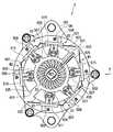 このように、径方向外側から径方向内側へ向かって、ヒートシンク611及び、半導体モジュール501~506、コンデンサ701~706、チョークコイル52が順に配置されている。これにより、径方向の空間が有効に活用されている。In this way, theheat sink 611, thesemiconductor modules 501 to 506, thecapacitors 701 to 706, and thechoke coil 52 are arranged in this order from the radially outer side to the radially inner side. Thereby, the radial space is effectively utilized.
