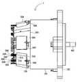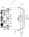 また、シャフト401が貫通した状態で、チョークコイル52が配置されている(図10)。チョークコイル52はドーナツ状の鉄心にコイル線が巻回されてなる。Further, thechoke coil 52 is arranged with theshaft 401 penetrating (FIG. 10). Thechoke coil 52 is formed by winding a coil wire around a donut-shaped iron core.