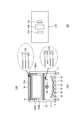 Thetranslucent plate laminate 64 is configured by laminating a plurality of translucent plates 65 (FIG. 6), and the parenthesis written withreference numeral 64 in FIG. The number of laminatedtransparent plates 65 is shown. The specific configuration of the light transmittingplate laminate 64 and the light amount adjustment will be described in detail later.