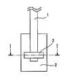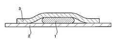 図2は、表裏判別明示手段を施したトウの末端を示す図1のI-I線に沿った断面図である。炭素繊維前駆体トウ1は、トウ1の裏面を下にして板状部材2に接触させて、トウ1の表面を外側にして粘着テープ3を密接させて貼り付けている。FIG. 2 is a cross-sectional view taken along the line II in FIG. 1, showing the end of the tow subjected to the front / back discrimination means. The carbonfiber precursor tow 1 is attached with the back surface of thetow 1 facing down and in contact with the plate-like member 2 and with the surface of thetow 1 facing outside and theadhesive tape 3 in close contact.