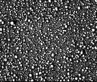 실시예 8의 방법에 따라 표피 포도상구균에서 분리한 세포밖 소포체를 글로방전 탄소 코팅 구리 그리드에서 3 분간 흡착 시켰다. 그리드를 증류수로 세척한 후, 2% 우라닐아세테이트로 염색 하였다. JEM101 투과전자현미경으로 관찰하였다. 도 14의 투과전자현미경 이미지에서 표피 포도상구균 유래 세포밖 소포체가 닫힌 구형을 이루고 있으며, 크기가 20-100 nm임을 알 수 있다. 표피 포도상구균에서 분리한 세포밖 소포체를 커버 글라스에 붙인 후, 2.5% 글루타르알데하이드로 1시간 동안 고정시키고, 1% 오스뮴 테트록사이드로 1시간 동안 후 고정시킨 뒤 에탄올로 단계적 탈수과정을 거치고, CO2시스템을 이용하여 임계점 건조를 진행하였다. 세포밖 소포체가 붙은 커버 글라스를 시료대에 올려 백금으로 코팅하였다. JSM-7401F 주사전자현미경으로 관찰하였다. 도 15의 주사전자현미경 이미지에서 비교적 균일한 크기 (20-100 nm)의 원형 모양의 세포밖 소포체가 관찰되었다.According to the method of Example 8, extracellular vesicles isolated from epidermal staphylococci were adsorbed for 3 minutes on a glow-discharge carbon-coated copper grid. The grid was washed with distilled water and then stained with 2% uranyl acetate. Observation was made with a JEM101 transmission electron microscope. The transmission electron microscope image of FIG. 14 shows that the epidermal staphylococcus aureus-derived extracellular vesicles form a closed spherical shape, the size of which is 20-100 nm. The extracellular vesicles isolated from epidermal staphylococci were attached to the cover glass, fixed with 2.5% glutaraldehyde for 1 hour, fixed with 1% osmium tetroxide for 1 hour and then subjected to stepwise dehydration with ethanol, Critical point drying was carried out using a CO2 system. The cover glass with extracellular vesicles was placed on a sample table and coated with platinum. Observation was made with a JSM-7401F scanning electron microscope. In the scanning electron microscopy image of FIG. 15, circular extracellular vesicles of relatively uniform size (20-100 nm) were observed.