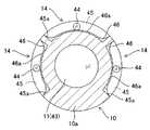 各側視照明窓14は、第1の実施形態と同様に、円周方向に沿って反射部46aを有する反射部材46又は導光溝45が配置され、その中央付近にライトガイド44の出射端面が配置された構成である。
