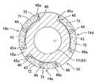 なお、図11の構成において、例えば導光溝45内側に適度の膜厚で光散乱物質71のみを設けるようにしても良い。この場合、光散乱物質71を側視照明窓14c,14d,14e部分に沿って帯状に設けるようにしても良い。この構成の場合にも、側視照明窓14c,14d,14eから出射される際の照明光を光散乱物質71による繰り返しの光散乱により、略均一にして側面方向に出射させることができる。
