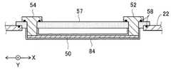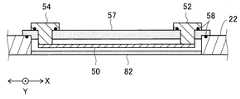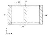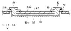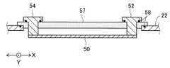 平面導体50の、ホルダ32側の面を表面、ホルダ32とは反対側の面を裏面と呼ぶと、平面導体50の裏面のX方向の両端部に、平面導体50の辺50bに沿ってY方向に延びているブロック状の給電電極52および終端電極54が取り付けられている。When the surface on theholder 32 side of theplanar conductor 50 is referred to as the front surface, and the surface opposite to theholder 32 is referred to as the back surface, Y is formed along theside 50b of theplanar conductor 50 at both ends in the X direction on the back surface of theplanar conductor 50. A block-shapedpower supply electrode 52 and aterminal electrode 54 extending in the direction are attached.