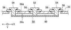 なお、図10に示した例のように平面導体50の裏面の表面粗さを大きくする技術、あるいは図11に示した例のように平面導体50の裏面50dに溝78を設ける技術と、図12~図14に示した例のように平面導体50の裏面に絶縁体80を設ける技術とを併用しても良い。そのようにすれば、上述したそれぞれの作用効果を併せて奏することができる。A technique for increasing the surface roughness of the back surface of theplanar conductor 50 as in the example shown in FIG. 10, or a technique for providing thegroove 78 in theback surface 50d of theplanar conductor 50 as in the example shown in FIG. A technique of providing theinsulator 80 on the back surface of theplanar conductor 50 as in the examples shown in FIGS. 12 to 14 may be used in combination. If it does in that way, each effect mentioned above can be show | played together.