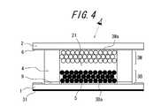 隔壁については、情報表示画面領域にあたる領域に配置する基板間ギャップ確保用の隔壁は透明材料を用いて透明に形成する。この隔壁は基板間ギャップ確保用のみならず表示媒体を収納するセルを形成する役割も担っており、高さは所定の基板間ギャップと同じにするが、帯電性粒子を含んだ、平均粒子径が1μm~20μmの範囲にある粒子群を表示媒体とする情報表示用パネルでは、10μm~500μmに、好ましくは10μm~100μmに、さらに好ましくは10μm~50μmに調整される。基板間ギャップ確保用の隔壁とは別に、専らセルを形成するために設ける隔壁は、基板間ギャップ確保用の隔壁よりも低くても構わないし透明とする必要もないが、情報表示画面領域において隔壁は非表示部分となるので、このセル形成専用の隔壁はできるだけ幅を細くするのが好ましい。基板間ギャップ確保用の隔壁の幅は10μm~100μmが好ましいのに対して、セル形成専用の隔壁の幅は2μm~50μmが好ましい。これらの隔壁の高さや幅は、配置する電極の形状や配置により適宜設計されるが、セル形成専用の隔壁の幅は、基板間ギャップ確保用の隔壁の幅以下とするのが好ましい。情報表示画面領域外の領域にも基板間ギャップ確保用の隔壁を設けるが、この隔壁は透明である必要もないし、セルを形成する必要もない。As for the partition, the partition for securing the inter-substrate gap arranged in the area corresponding to the information display screen area is formed transparently using a transparent material. This partition not only secures the gap between the substrates, but also forms a cell that accommodates the display medium. The height is the same as the predetermined gap between the substrates, but the average particle diameter including the chargeable particles. Is set to 10 μm to 500 μm, preferably 10 μm to 100 μm, and more preferably 10 μm to 50 μm in an information display panel using a particle group having a particle size in the range of 1 μm to 20 μm. Apart from the partition for securing the gap between the substrates, the partition provided exclusively for forming the cell may be lower than the partition for securing the gap between the substrates or need not be transparent, but the partition in the information display screen region Since this becomes a non-display portion, it is preferable to make the partition dedicated to cell formation as thin as possible. The width of the partition for securing the gap between the substrates is preferably 10 μm to 100 μm, while the width of the partition dedicated for cell formation is preferably 2 μm to 50 μm. The height and width of these partition walls are appropriately designed according to the shape and arrangement of the electrodes to be arranged, but the width of the partition walls dedicated to cell formation is preferably equal to or less than the width of the partition walls for securing the inter-substrate gap. A partition for securing a gap between the substrates is provided in a region outside the information display screen region, but the partition does not need to be transparent and does not need to form a cell.
