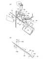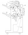 揺動ガイド149には、案内ガイド151、第一除電針152、第二除電針153がそれぞれ軸方向の全域に亙って配置されている。揺動ガイド149は、回動可能に支持軸154に支持され、揺動モータM149によって、上下方向に揺動可能になっている。開閉可能な揺動ガイド149の開放端部には、排出ローラ対130の上部排出ローラ130bが配置され、上部排出ローラ130bは、揺動ガイド149の開閉動作に伴って下部排出ローラ130aに対して離接する。排出ローラ対130は、上下それぞれの排出ローラシャフト部に駆動手段である束排紙駆動モータM130からの回転駆動が付与され、正逆回転可能である。これにより、排出ローラ対130は、下排出トレイ137上に排出する排出方向と、排出方向とは逆の、処理トレイ138上に搬送するシート搬送方向とに、排出、搬送可能である。In theswing guide 149, aguide guide 151, a firststatic elimination needle 152, and a secondstatic elimination needle 153 are arranged over the entire area in the axial direction. Theswing guide 149 is rotatably supported by asupport shaft 154 and can be swung in the vertical direction by a swing motor M149. Theupper discharge roller 130b of thedischarge roller pair 130 is disposed at the open end of theswingable guide 149 that can be opened and closed. Theupper discharge roller 130b is moved relative to thelower discharge roller 130a as theswing guide 149 is opened and closed. Separate. The pair ofdischarge rollers 130 can be rotated forward and backward by rotational driving from the bundle sheet discharge drive motor M130 serving as drive means on the respective upper and lower discharge roller shafts. Thus, thedischarge roller pair 130 can be discharged and conveyed in the discharge direction for discharging onto thelower discharge tray 137 and in the sheet conveyance direction for conveying onto theprocessing tray 138 opposite to the discharge direction.