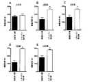 レセルピン最終投与の1、3、5、7、および14日後の強制水泳試験結果をそれぞれ図3A、図3B、図3C、図3Dおよび図3Eに示した。最終投与1日後では、レセルピン投与による無動時間の有意な増加はみとめられなかった(P = 0.625、Studentのt検定)。一方、最終投与3、5、7、および14日後では、レセルピン投与群は溶媒投与群に対していずれも有意な無動時間の増加を示した(それぞれ、P = 0.0007、P = 0.004、P<0.0001、およびP = 0.0008、 Studentのt検定)。以上の結果は、レセルピン1mg/kgの1日1回の3日間反復投与が少なくとも最終投与3~14日後において鬱症状を誘発していることを示す。線維筋痛症患者では高率にうつ病を併発することがよく知られており、随伴症状として鬱症状を発症するという点においてもこの病態モデル動物は線維筋痛症患者と類似性が高い。2. Results The results of forcedswimming tests 1, 3, 5, 7, and 14 days after the final administration of reserpine were shown in FIGS. 3A, 3B, 3C, 3D, and 3E, respectively. One day after the last administration, no significant increase in immobility time was observed with reserpine administration (P = 0.625, Student's t test). On the other hand, at 3, 5, 7, and 14 days after the last administration, the reserpine administration group showed a significant increase in immobility time compared to the vehicle administration group (P = 0.0007, P = 0.004, P <respectively). 0.0001, and P = 0.0008, Student t test). These results indicate that repeated administration ofreserpine 1 mg / kg once a day for 3 days induces depressive symptoms at least 3-14 days after the last dose. It is well known that fibromyalgia patients develop depression at a high rate, and this animal model is highly similar to fibromyalgia patients in that it develops depression as an accompanying symptom.