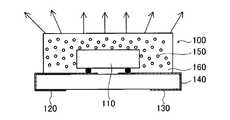 また、特許文献9および10に開示されるような従来公知の蛍光体混色型のLED発光素子において、白色系の発光出力を高めるに、蛍光粒子が混入された透明樹脂の厚みを厚くしたり、透明樹脂の蛍光粒子含有量を増やしたりする等の手法を採用した場合、透明樹脂の厚みや透明樹脂の蛍光粒子含有量によっては、青色LEDからの青色光の透過性が弱くなり、かえって白色系の発光出力が低下する場合があった。Further, in the conventionally known phosphor-mixed LED light emitting elements as disclosed in