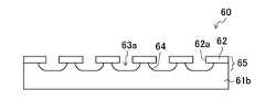 さらに、剥離層19が形成された半導体基板20の被接合表面、及び中間基板60の被接合表面に対して、アンモニア-過酸化水素系のSC1洗浄により親水化処理を行った後に、半導体基板20の被接合表面と中間基板60の被接合表面とを重ね合わせて、例えば、200℃~300℃で約2時間、熱処理することにより、図6(c)に示すように、半導体基板20及び中間基板60を接合する。ここで、中間基板60は、図6(c)、図19及び図20に示すように、複数の開口部62aがマトリクス状に形成された熱酸化層62と、熱酸化層62の下層に設けられ、熱酸化層62の各開口部62aにそれぞれ繋がる複数の凹状部63aが形成されたシリコン基板61bとを備えている。また、中間基板60には、図20に示すように、上述した熱酸化層62と、熱酸化層62を複数箇所で支持する柱状のシリコン構造64とにより構成され、シリコン基板61bと熱酸化層62とが分離可能な分離構造65が設けられている。そして、中間基板60は、まず、シリコン基板61aを熱酸化して、厚さ100~300nm程度の熱酸化膜を形成した後に、その熱酸化膜をフォトリソグラフィ等を用いてパターニングすることにより、図17及び図18に示すように、例えば、一辺が0.5μm程度の正方形状に開口し、その開口ピッチが1.5μm程度である複数の開口部62aを有する熱酸化層62を形成し、続いて、シリコン基板61aの上層部を各開口部62aを介して二フッ化キセノン等のガスによりエッチングして、図19及び図20に示すように、凹状部63aを形成することにより、製造することができる。なお、シリコン基板61aのエッチングには、TMAH(TetraMethyl Ammonium Hydroxide)等のアルカリ性溶液を用いてもよい。また、柱状のシリコン構造64の径及び高さを適切に設定することにより、後で行うCMP工程に耐え、且つ、ねじれ応力による分離が可能な中間基板60を設計することができる。Further, the surface to be bonded of the