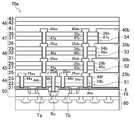 第3下地層53は、図1に示すように、第2平坦化膜31、第1層間絶縁膜32及び第2層間絶縁膜33からなる第3絶縁層46と、第3絶縁層46に積層された第3回路パターン35aa及び35abとを備えている。ここで、図1に示すように、第3回路パターン35aaは、第3絶縁層46に形成された第3コンタクトホール46aを介して第2回路パターン30aaに接続され、第3回路パターン35abは、第3絶縁層46に形成された第3コンタクトホール46bを介して第2回路パターン30abに接続されている。As shown in FIG. 1, the