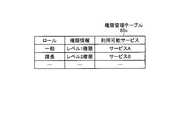 権限管理テーブル85cは、ロール毎の権限情報を記憶するテーブルである。図8は、権限管理テーブル85cのデータ構造の一例を示す図である。図8に示すように、この権限管理テーブル85cは、ロール、権限情報、利用可能サービスを対応付けて記憶する。例えば、権限管理テーブル85cの1段目に示すように、ロール「一般」の権限情報は「レベル1権限情報」であり、かかる権限情報で利用できるサービスは「サービスA」となる。権限管理テーブル85cの2段目に示すように、ロール「課長」の権限情報は「レベル2権限情報」であり、かかる権限情報で利用できるサービスは「サービスB」となる。The authority management table 85c is a table that stores authority information for each role. FIG. 8 is a diagram illustrating an example of a data structure of the authority management table 85c. As shown in FIG. 8, the authority management table 85c stores roles, authority information, and available services in association with each other. For example, as shown in the first row of the authority management table 85c, the authority information of the role “general” is “