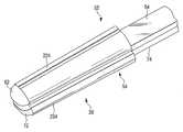 ここで、第1および第2の保持部材52,54は、第2の保持部材54を第1の保持部材52に対して閉じた状態で、それらの基部64,74を合わせた略円形または略楕円状の外周面が、筒体42の先端部の外周面に対して略面一または僅かに大径に形成されている。このため、シース44を筒体42に対してスライドさせて、シース44の先端で第1の保持部材52および第2の保持部材54の基部64,74を覆うことが可能である。Here, the first and second holdingmembers 52 and 54 are substantially circular or substantially combined with theirbase portions 64 and 74 in a state where the second holdingmember 54 is closed with respect to the first holdingmember 52. An elliptical outer peripheral surface is formed to be substantially flush with or slightly larger in diameter than the outer peripheral surface of the distal end portion of thecylindrical body 42. For this reason, thesheath 44 can be slid with respect to thecylindrical body 42, and thebase portions 64 and 74 of the first holdingmember 52 and the second holdingmember 54 can be covered with the tip of thesheath 44.