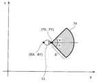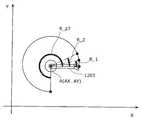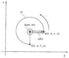 第2の条件は、点A(AX、AY)を始点として点B(X_0、Y_0)を終点とする第1のベクトルと、点A(AX、AY)を始点として点(X、Y)を終点とする第2のベクトルとのなす角が、0以上であって、かつ、動作計画の最後の回転角「270」以下であることである。The second condition is that the first vector starting from the point A (AX, AY) and ending at the point B (X_0, Y_0) and the point (X, Y) starting from the point A (AX, AY) are used. The angle formed by the second vector as the end point is not less than 0 and not more than the last rotation angle “270” of the motion plan.
