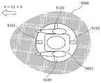 図39は、図38に示された移動ロボット9001が移動している際の危険範囲9060を示す図である。図39に示された危険範囲9060は、移動ロボット9001が速度V1で左側に進む場合の危険範囲である。危険範囲9060は、進行方向である移動ロボット9001の左側の領域において、停止している場合よりも大きくなる。FIG. 39 is a diagram showing a