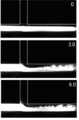 The mixing state is imaged by 500 frames per second using a high-speed camera.  The image taken is converted to a monochrome image.  Therefore, the portion appearing white in Figs. 14 and 15 is the flow of the contrast agent and the portion appearing black is the flow of the saline.  Thus, the degrees of mixing can be visualized by tracking the fluorescent dye.