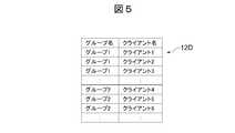 グルーピング処理部30Bは、複数のクライアント14をグルーピングした結果をディスク装置12のグルーピングテーブル12Dに登録する。図5は、グルーピングテーブルの一例であり、グループ名のエントリと、グループに属するクライアントのエントリとを有する。Thegrouping processing unit 30B registers the result of grouping a plurality ofclients 14 in the grouping table 12D of thedisk device 12. FIG. 5 shows an example of a grouping table, which includes an entry for a group name and an entry for a client belonging to the group.
