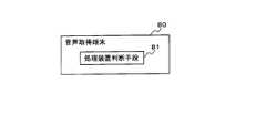また、音声取得端末80が、入力信号から音声区間を抽出する音声検出手段(例えば、音声検出部301)を備えていてもよい。このとき、処理装置判断手段81が、音声の入力状況に応じて、音声区間の抽出処理を行う装置を自音声取得端末80と音声認識装置90の中から少なくとも1つ選択し、音声検出手段が、処理装置判断手段が自音声取得端末80を選択した場合に、入力信号から音声区間を抽出してもよい。このように、CPUパワーを多く必要とする音声検出処理を分担させることで、より精度が高い音声認識結果を得ることができる。Further, thevoice acquisition terminal 80 may include voice detection means (for example, a voice detection unit 301) that extracts a voice section from the input signal. At this time, the processingdevice determination unit 81 selects at least one device for performing speech segment extraction processing from the ownspeech acquisition terminal 80 and thespeech recognition device 90 according to the input state of the speech, and the speech detection unit When the processing device determination unit selects the ownvoice acquisition terminal 80, the voice section may be extracted from the input signal. Thus, by sharing the voice detection process that requires a lot of CPU power, a voice recognition result with higher accuracy can be obtained.