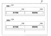 保守作業事例データベース21は、保守情報102、105、・・・と稼動情報103、106、・・・を相互に関連付けて記憶したデータベースである。ある時点における稼動情報と、当該稼動情報に対する対策等を記述した情報である保守情報との組合せを「事例」101、104、・・・と言う。事例は、複数個記憶されている。保守情報及び稼動情報の詳細は後記する。(Maintenance work example database)
