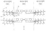 이하의 도면에서 여러 층 및 영역을 명확하게 표현하기 위하여 두께나 영역을 확대하여 나타내었다. 명세서 전체를 통하여 유사한 부분에 대해서는 동일한 도면부호를 사용하였다. 층, 막, 영역, 기판 등의 부분이 다른 부분 "위에" 또는 "상면" 있다고 할 때, 이는 다른 부분 "바로 위에" 있는 경우 뿐 아니라 그 중간에 또 다른 부분이 있는 경우도 포함한다. 반대로 어떤 부분이 다른 부분 "바로 위에" 있다고 할 때에는 중간에 다른 부분이 없는 것을 뜻한다. 또한, 본 명세서에 기재된 신호는 특별한 언급이 없는 한, 전압 또는 전류를 총칭한다.In the drawings, thicknesses or regions are enlarged in order to clearly express various layers and regions. The same reference numerals are used for similar parts throughout the specification. When a portion of a layer, film, region, substrate, etc. is said to be "on top" or "top" of another part, this includes not only the case where the other part is "right over" but also another part in the middle. On the contrary, when a part is "just above" another part, there is no other part in the middle. In addition, the signals described herein collectively refer to voltage or current, unless otherwise noted.