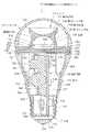 また、空洞部12b2は、直交する放射方向に2本形成したので、放熱のための空気流通路がカバー部材13の長手方向に直交して位置しているので、口金付ランプをどのような向きに装着しても、電球の周囲全体から外気を取り込むことが可能になる。また、特に、電球を水平方向に装着した場合には、電球が回転方向の如何なる位置で装着が停止されても、いずれか一方の空洞部は必ず略上下方向に位置して向かせることができ、下方から外気を吸い込み上方から放出される煙突効果によって、より効果的な放熱作用を行わせることが可能になる。In addition, since the two hollow portions 12b2 are formed in the orthogonal radial directions, the air flow passage for heat dissipation is positioned orthogonal to the longitudinal direction of the