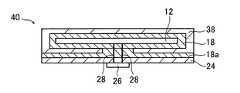 Specifically, also in a structure using the surfaceprotection barrier film 38 similarly to the example illustrated in Fig. 2, there may be a region at the center of the bottom side of thesolar cell 12 that is not covered by the surfaceprotection barrier film 38 as in asolar cell module 40 as illustrated in Fig. 4.  On the bottom side of thesolar cell 12, a preferred region where the surfaceprotection barrier film 38 is disposed is similar to that in the case of thesolar cell module 32 illustrated in Fig. 2.