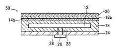 A more preferable example of the surfaceprotection barrier film 38 is a film obtained by forming on the surface of the topsurface protection film 20 of such a composition the underlying organic layer and the inorganic layer disposed thereon both used in the watervapor barrier film 14 described above.  The surfaceprotection barrier film 38 provides an increased water barrier property.
