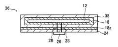 In thesolar cell modules 10 and 32 illustrated in Figs. 1 and 2, basically the watervapor barrier film 14 possesses only water vapor barrier property.  On the other hand, in thesolar cell module 36 illustrated in Fig. 3, the water vapor barrier film is a surfaceprotection barrier film 38 formed of a surface protection film integrated with a water vapor barrier film.