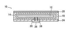 In the illustrated example, the sealingmaterial 18 also serves as a bond.  However, a regular bond may be used, if necessary, to bond the watervapor barrier film 14, the sealingmaterial 18, the topsurface protection film 20, and the bottomsurface protection film 24.